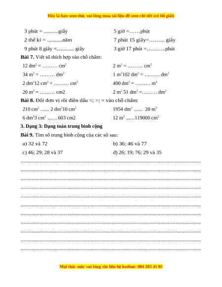 2. Dạng 2: Ôn tập về bảng đơn vị đo khối lượng, giây, thế kỷ, đơn vị đo diện tích.