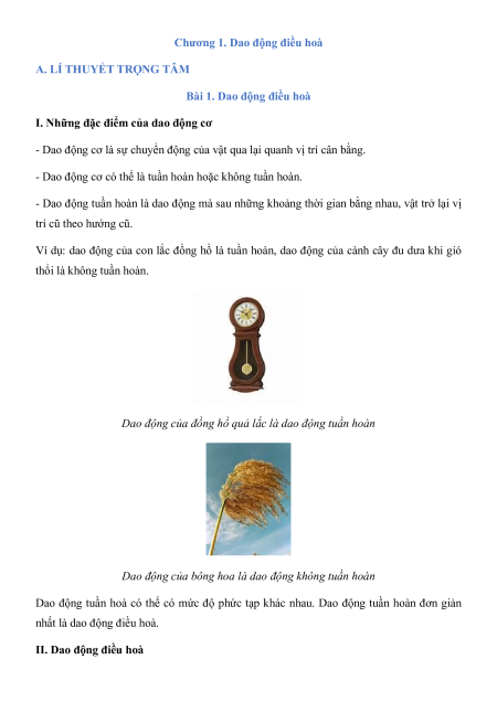 Ví dụ: dao động của con lắc đồng hồ là tuần hoàn, dao động của cành cây đu dưa khi gió