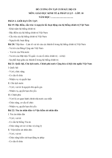 Đề cương ôn tập cuối học kì 2 Kinh tế pháp luật 10 Cánh diều