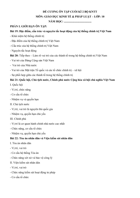 Đề cương ôn tập cuối học kì 2 Kinh tế pháp luật 10 Kết nối tri thức