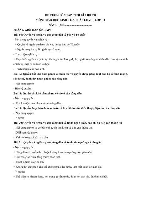 Đề cương ôn tập cuối học kì 2 Kinh tế pháp luật 11 Cánh diều