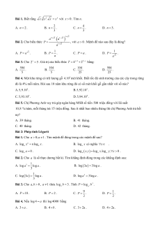 Bài 1. Cho a 0;a 1. Tìm mệnh đề đúng trong các mệnh đề sau? A. log n x n x.