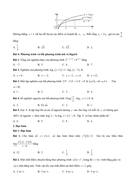 - Đạo hàm của hàm số mũ và hàm số lôgarit.