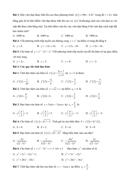 - Bất phương trình mũ, bất phương trình lôgarit. 2. Đạo hàm Bài 1: Đạo hàm - Đạo hàm.