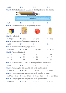 Câu 16. Kết quả của phép tính 12 + 27 là: A. 49 B. 35 C. 39 D. 55