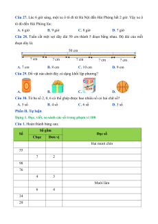 Câu 27. Lúc 6 giờ sáng, một xe ô tô đi từ Hà Nội đến Hải Phòng hết 2 giờ. Vậy xe ô