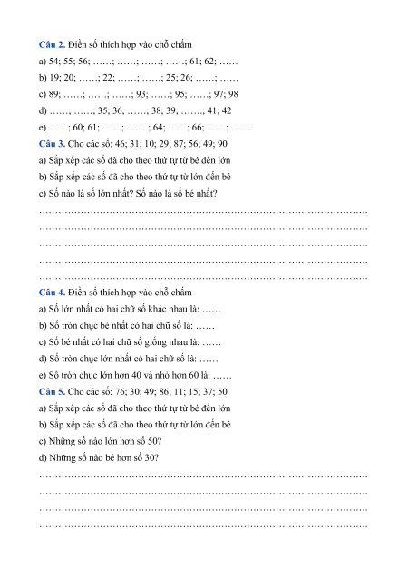 Dạng 1. Đọc, viết, so sánh các số trong phạm vi 100