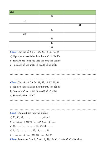 Dạng 1. Đọc, viết, so sánh các số trong phạm vi 100