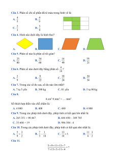 Câu 6. Phân số nào dưới đây bằng phân số 4 ? 18 A. 2 B. 8 C. 10 D. 20 9 22 24 34