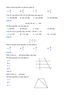 Phân số tối giản thích hợp điền vào chỗ chấm là: A. 16 B. 25 C. 14 D. 29 3 6 3 6 Câu 16.