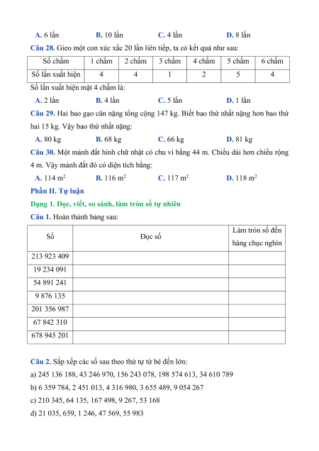 1. Đọc, viết, so sánh, làm tròn số tự nhiên