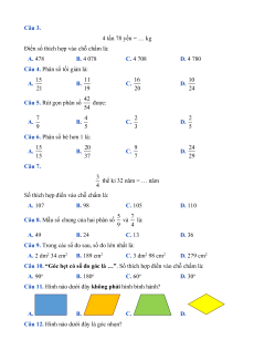 Câu 2. Làm tròn số 245 809 135 đến hàng triệu được số: A. 245 810 000 B. 245 800 000 C. 245 000 000 D. 246 000 000 Câu 3. 4 tấn 78 yến = … kg