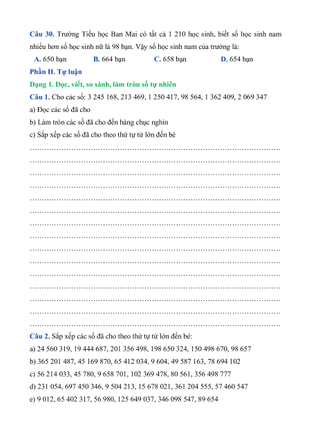 1. Đọc, viết, so sánh, làm tròn số tự nhiên