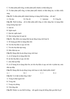 Câu 17. Tủ điện phân phối nhánh phân phối điện cho A. Tủ điện động lực B. Tủ điện chiếu sáng