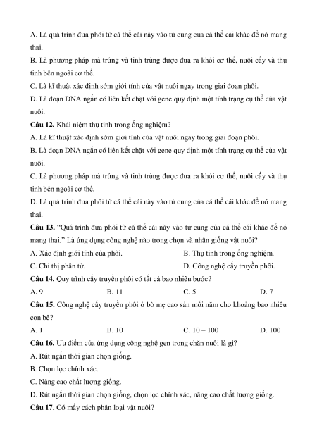 Câu 11. Khái niệm công nghệ cấy truyền phôi?