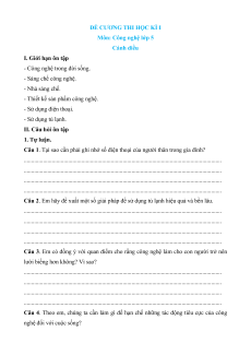Đề cương ôn tập Cuối kì 1 Công nghệ lớp 5 Cánh diều