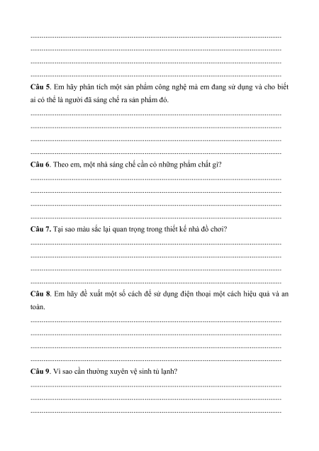 - Thiết kế sản phẩm công nghệ. - Sử dụng điện thoại. - Sử dụng tủ lạnh. II. Câu hỏi ôn tập 1. Tự luận.