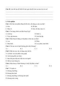 Câu 1. Khi làm sản phẩm đồng hồ đồ chơi, cần dụng cụ nào sau đây? A. Kéo. B. Hồ dán. C. Màu vẽ. D. Kéo, hồ dán, màu vẽ.