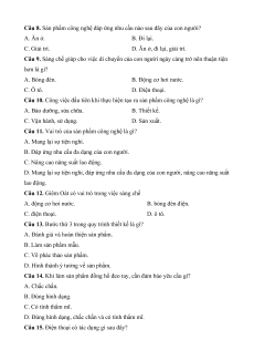 Câu 8. Sản phẩm công nghệ đáp ứng nhu cầu nào sau đây của con người? A. Ăn ở. B. Đi lại. C. Giải trí.