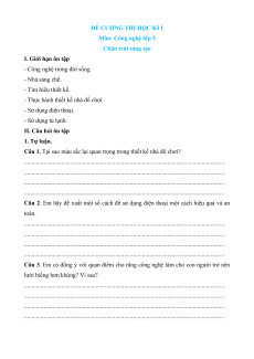 Đề cương ôn tập Cuối kì 1 Công nghệ lớp 5 Chân trời sáng tạo