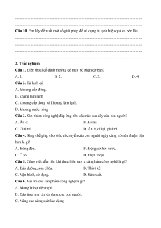 - Thực hành thiết kế nhà đồ chơi. - Sử dụng điện thoại. - Sử dụng tủ lạnh. II. Câu hỏi ôn tập 1. Tự luận.