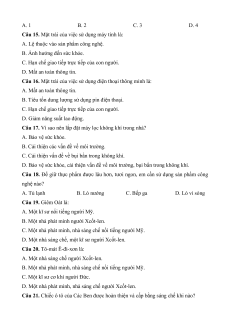 Câu 13. Điện thoại di động có bộ phận cơ bản nào sau đây? A. Loa. B. Phím. C. Màn hình. D. Loa, phím, màn hình.