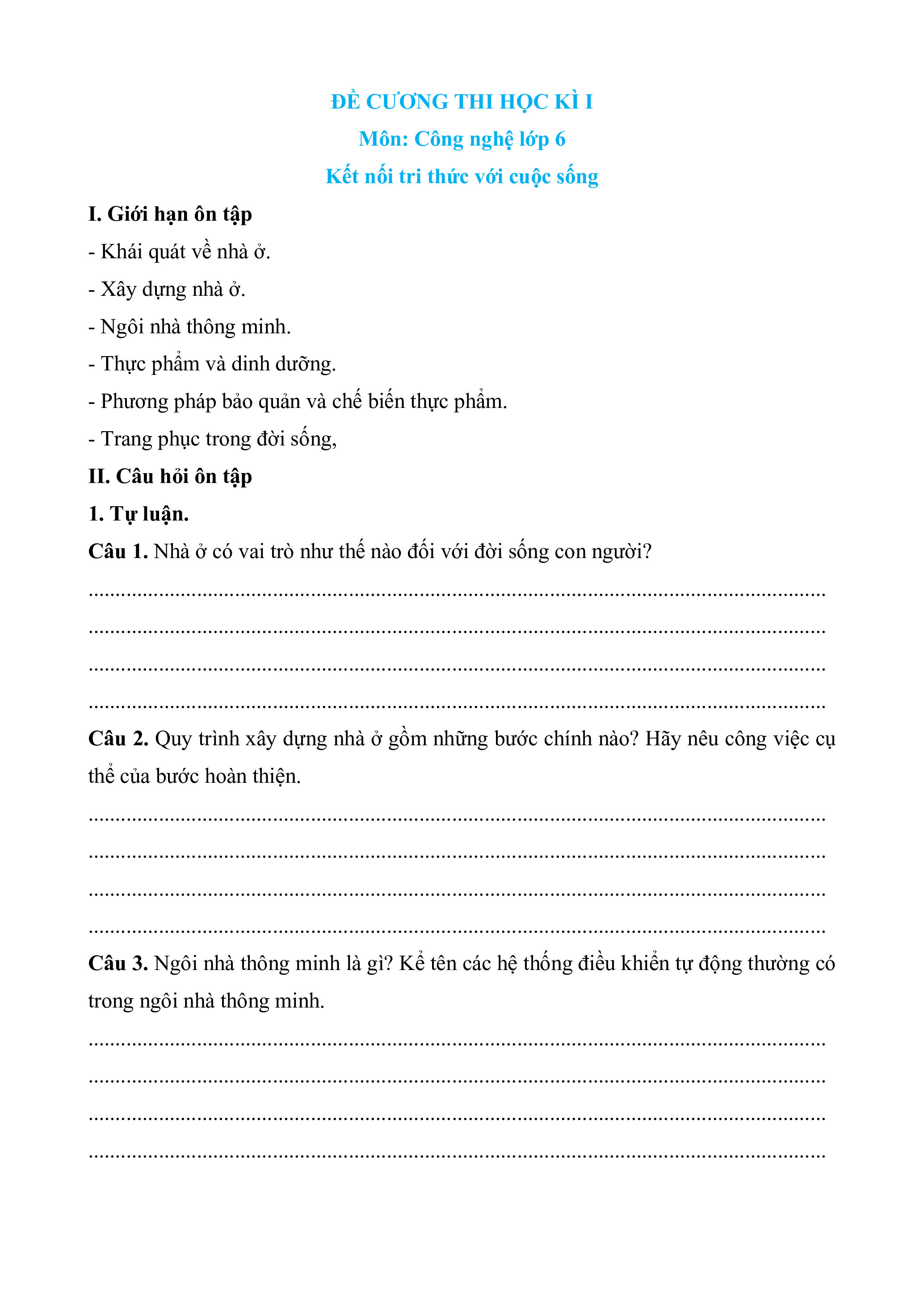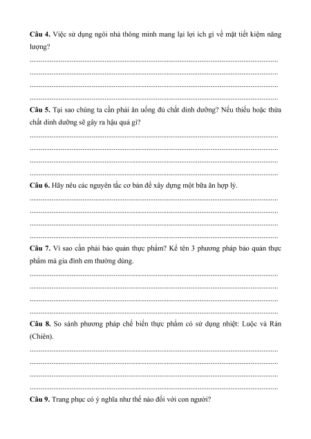 Đề cương ôn tập Cuối kì 1 Công nghệ lớp 6 Kết nối tri thức