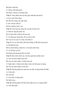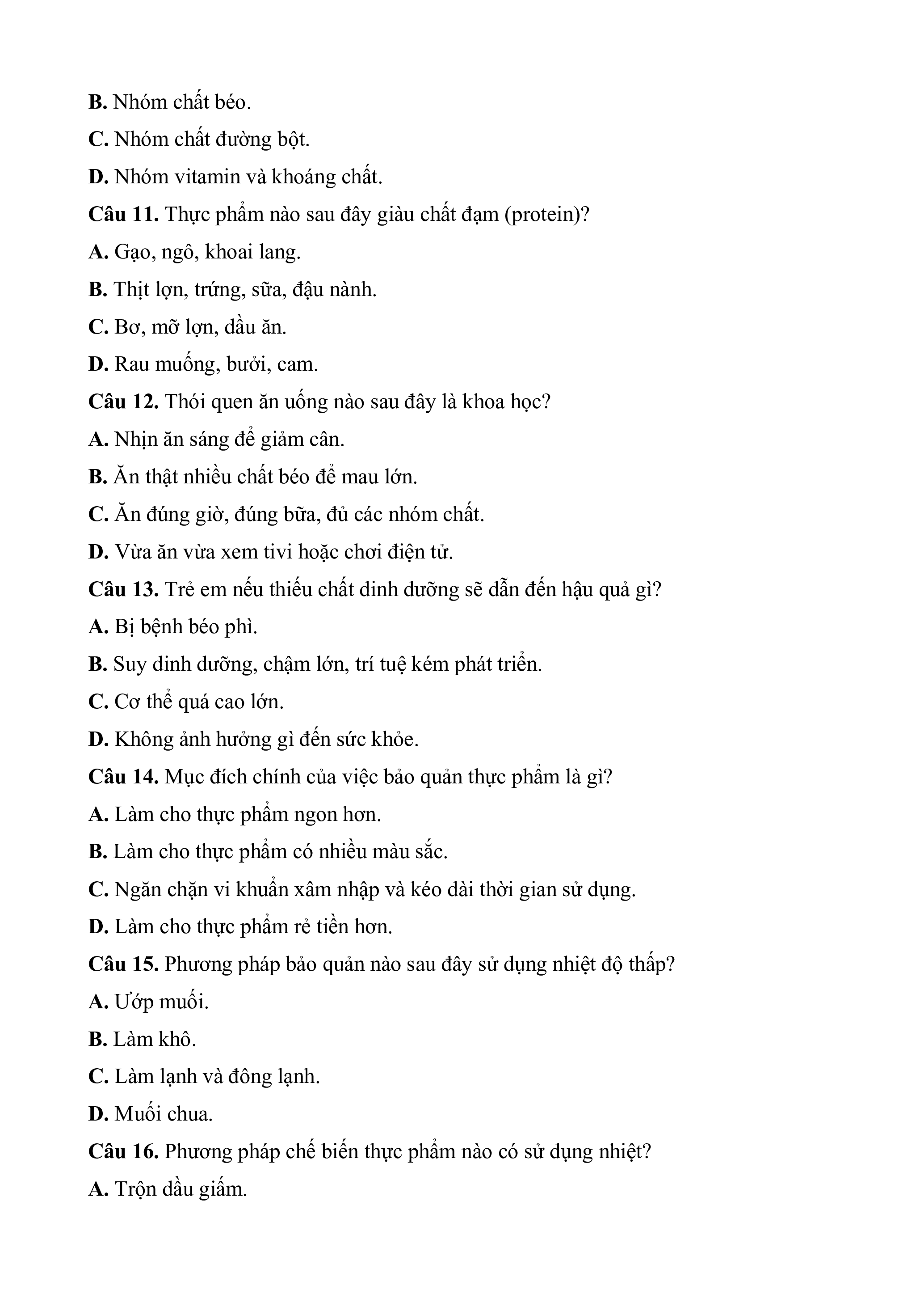 Câu 10. Nhóm thực phẩm nào là nguồn cung cấp năng lượng chủ yếu cho mọi hoạt động của cơ thể? A. Nhóm chất đạm.