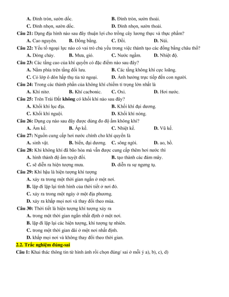 Câu 30: Thời tiết là hiện tượng khí tượng xảy ra