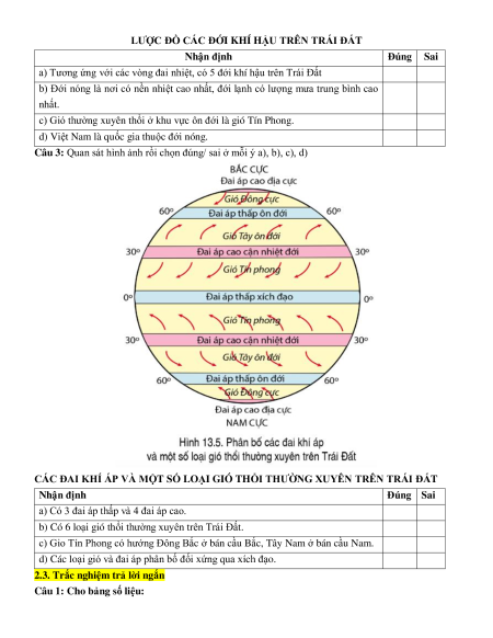 SƠ ĐỒ CÁC TẦNG CỦA KHÍ QUYỂN Nhận định Đúng Sai