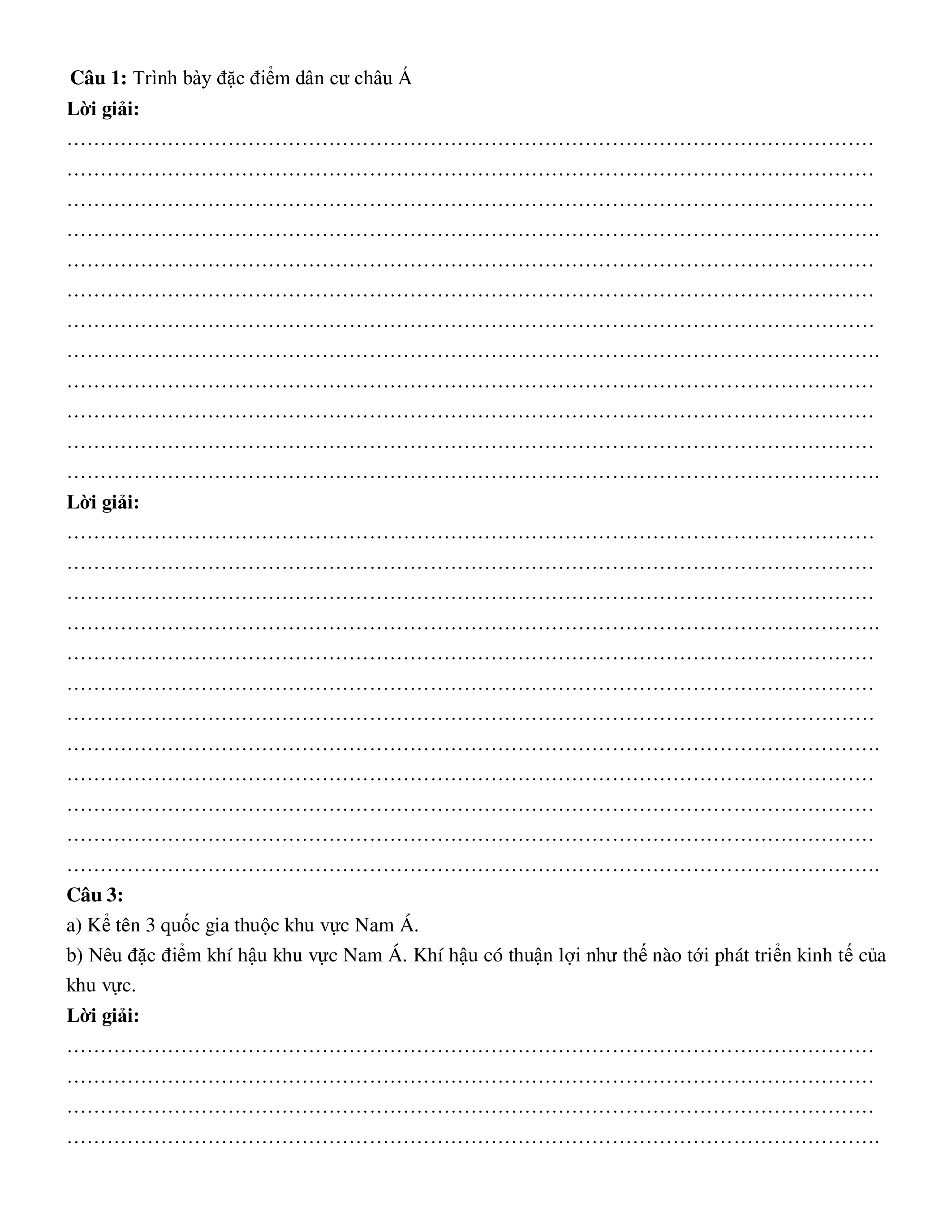 Đề cương ôn tập Cuối kì 1 Địa lí 7 Cánh diều cấu trúc mới