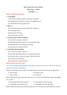 Đề cương ôn tập Cuối kì 1 Địa lí 9 Kết nối tri thức