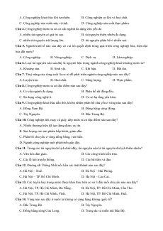 Câu 1. Loại khoáng sản nào sau đây vừa là nguyên liệu vừa là nhiên liệu cho một số ngành khác? A. Than, dầu khí. B. Mangan, crôm. C. A-pa-tit, đồng. D. Crôm, pirit.