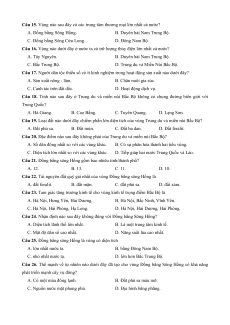 Câu 15. Vung nào sau đây có các trung tâm thương mại lớn nhất cả nước? A. Đồng băng Sông Hồng.