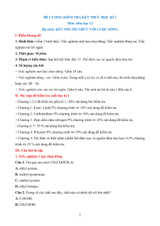 ĐỀ CƯƠNG KIỂM TRA KẾT THÚC HỌC KÌ 1 Môn: Hóa học 12
