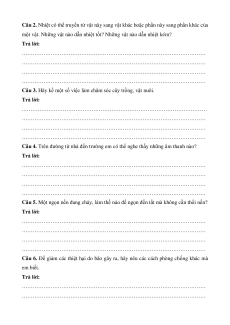 Câu 3. Hãy kể một số việc làm chăm sóc cây trồng, vật nuôi. Trả lời: