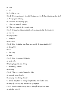 Câu 2: Để chứng minh cây cần chất khoáng, người ta đã thực hiện thí nghiệm nào?