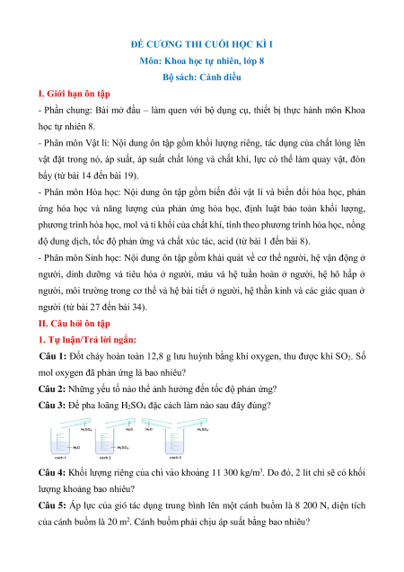 Đề cương ôn tập Cuối kì 1 Khoa học tự nhiên 8 Cánh diều