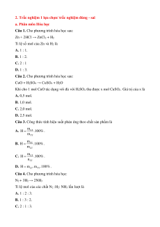 Câu 1. Cho phương trình hóa học sau: Zn + 2HCl → ZnCl2 + H2