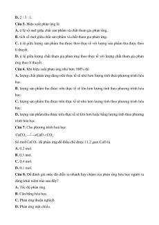 Câu 6. Khi hiệu suất phản ứng nhỏ hơn 100% thì