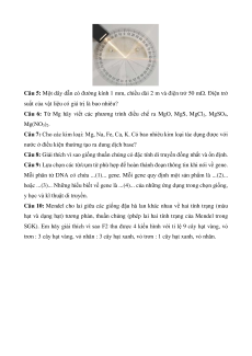 Câu 10: Mendel cho lai giữa các giống đậu hà lan khác nhau về hai tính trạng (màu