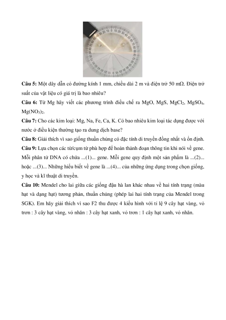 Câu 5: Một dây dẫn có đường kính 1 mm, chiều dài 2 m và điện trở 50 m. Điện trở