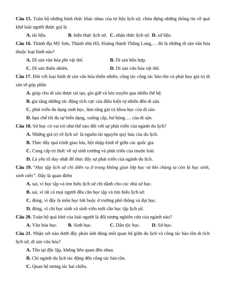 Câu 18. Sử học có vai trò như thế nào đối với sự phát triển của ngành du lịch?