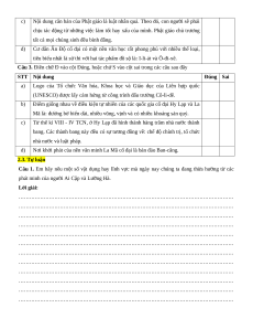 Câu 1. Điền chữ Đ vào cột Đúng, hoặc chứ S vào cột sai trong các câu sau đây ST Nội dung Đúng Sai T a)
