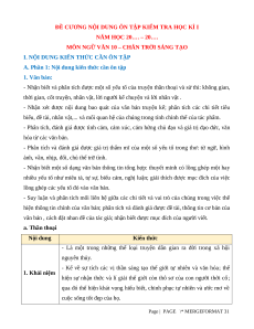 ĐỀ CƯƠNG NỘI DUNG ÔN TẬP KIỂM TRA HỌC KÌ I