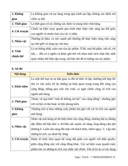 - Nhận biết và phân tích được một số yếu tố của truyện thần thoại và sử thi: không gian,