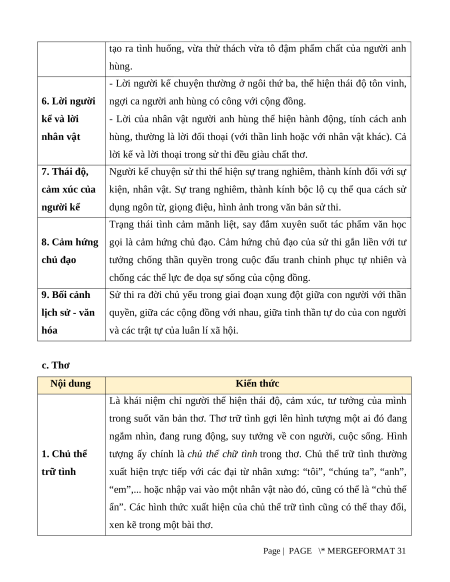 và các trật tự của luân lí xã hội. c. Thơ Nội dung Kiến thức