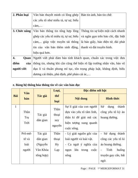 - Nhận biết một số dạng văn bản thông tin tổng hợp: thuyết minh có lồng ghép một hay
