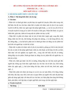 Đề cương ôn tập Cuối kì 1 Ngữ văn 12 Cánh diều
