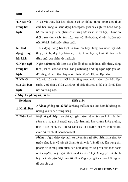 A. Phần 1: Nội dung kiến thức cần ôn tập 1. Văn bản: